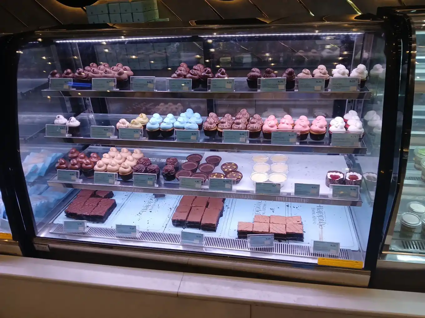 Their wide menu includes cakes, pastries, and traditional mithai.