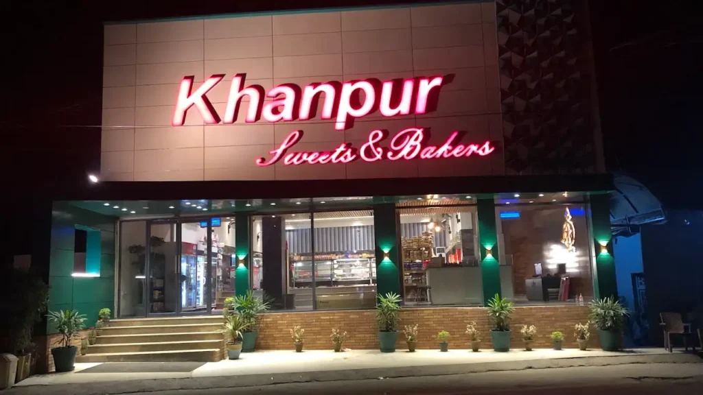 Khanpur Sweets and Bakers is known for its traditional sweets and quality bakery items.