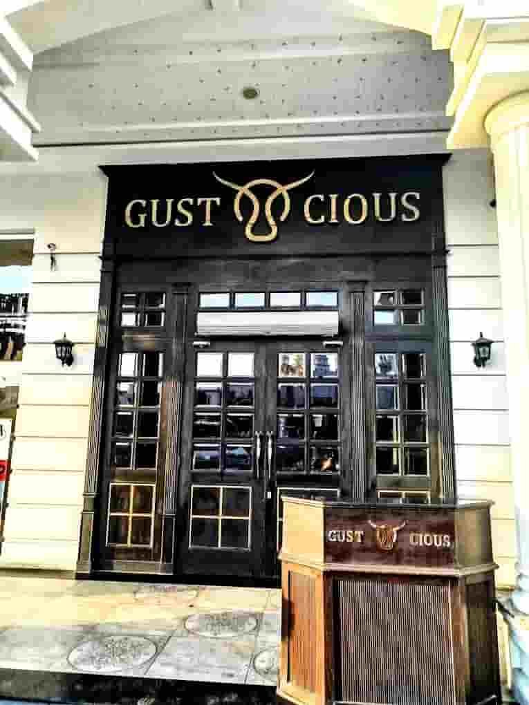 Gustocious is a trendy restaurant known for creative food presentation and diverse buffet offerings.