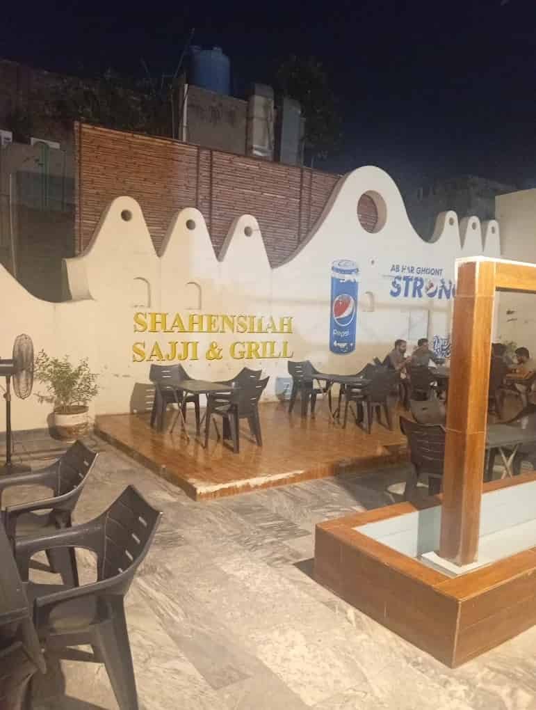 Shahenshah Sajji And Grill is famous for its smoky BBQ flavors and traditional sajji.