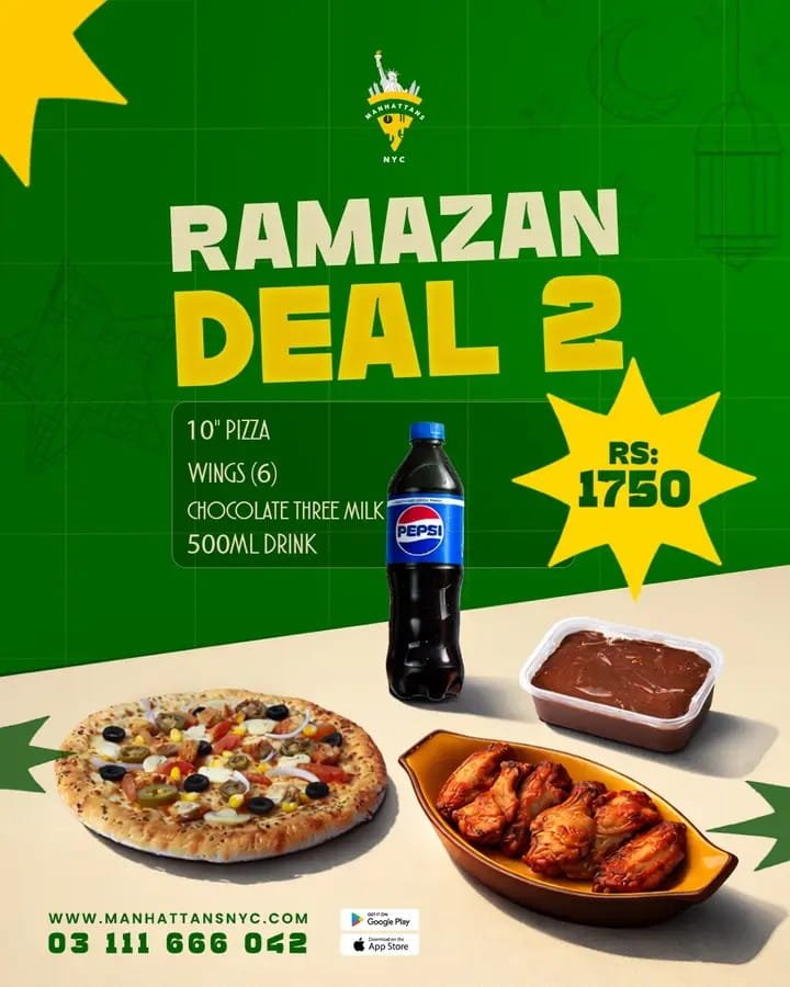 Their Ramadan deals often combine pizzas with wings and drinks.