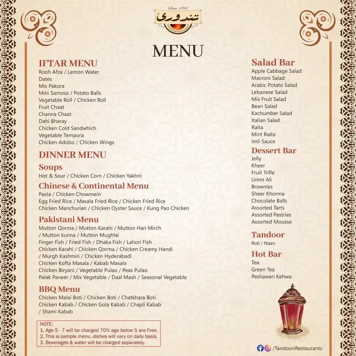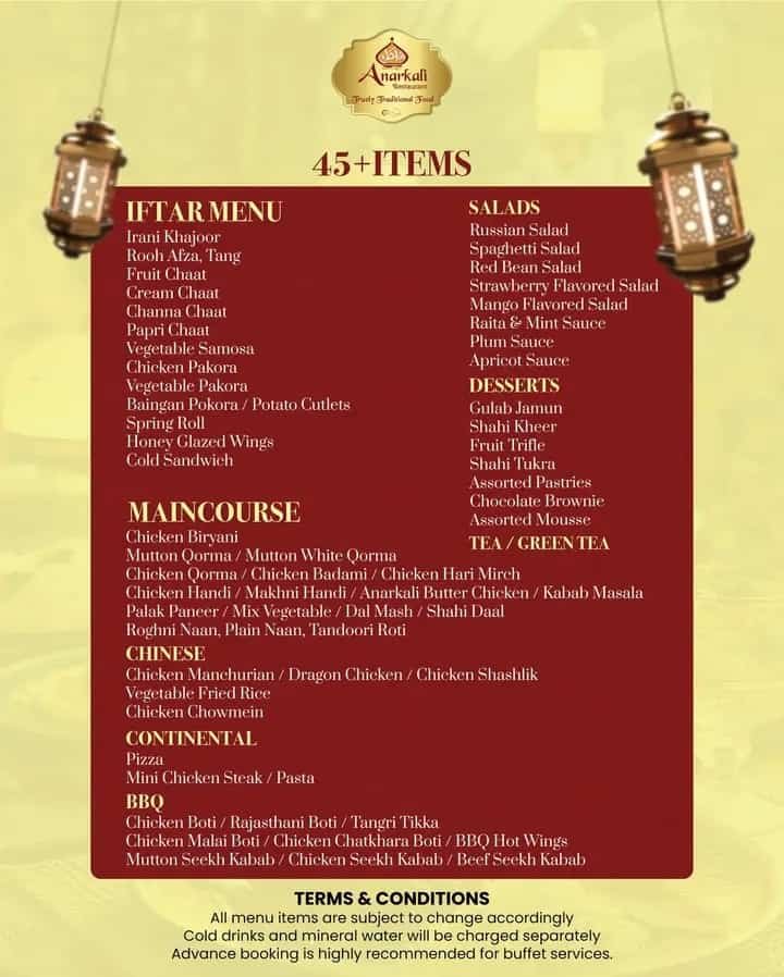 You can enjoy karahi, biryani, kebabs, and classic sweets at reasonable prices, making it a popular Ramadan choice.
