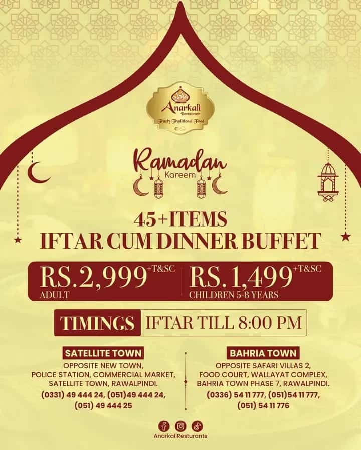 From luxury hotels to cozy local restaurants these venues serve everything from traditional Pakistani dishes to continental and Asian cuisine, making every iftar special and satisfying.