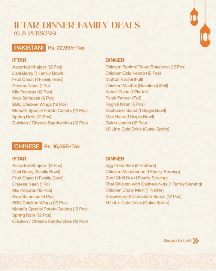 The Monal offers a premium iftar buffet with breathtaking city views and an elegant ambiance.