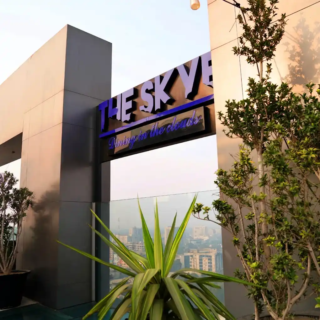 The Skye Restaurant offers a rooftop dining experience with a beautiful city view.