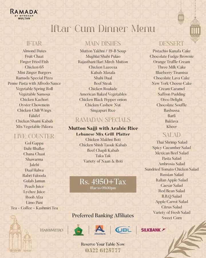 Multan offers an impressive variety of iftar buffets for every taste and budget.