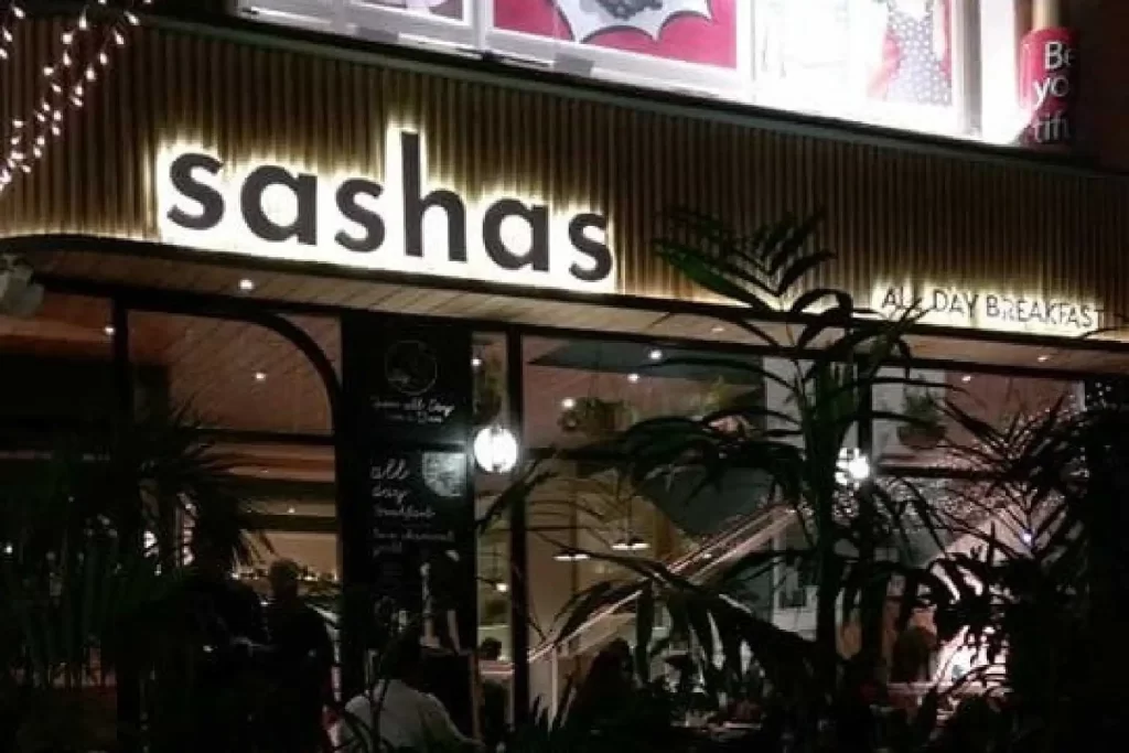 Sashas stands out with its lively ambiance and extensive menu that includes continental, fast food, and comfort dishes.