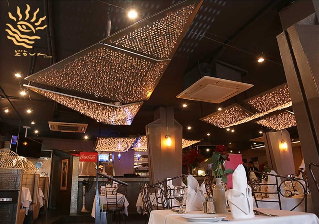 Café Zouk’s rooftop offers a youthful and vibrant atmosphere with stylish seating and soft music.