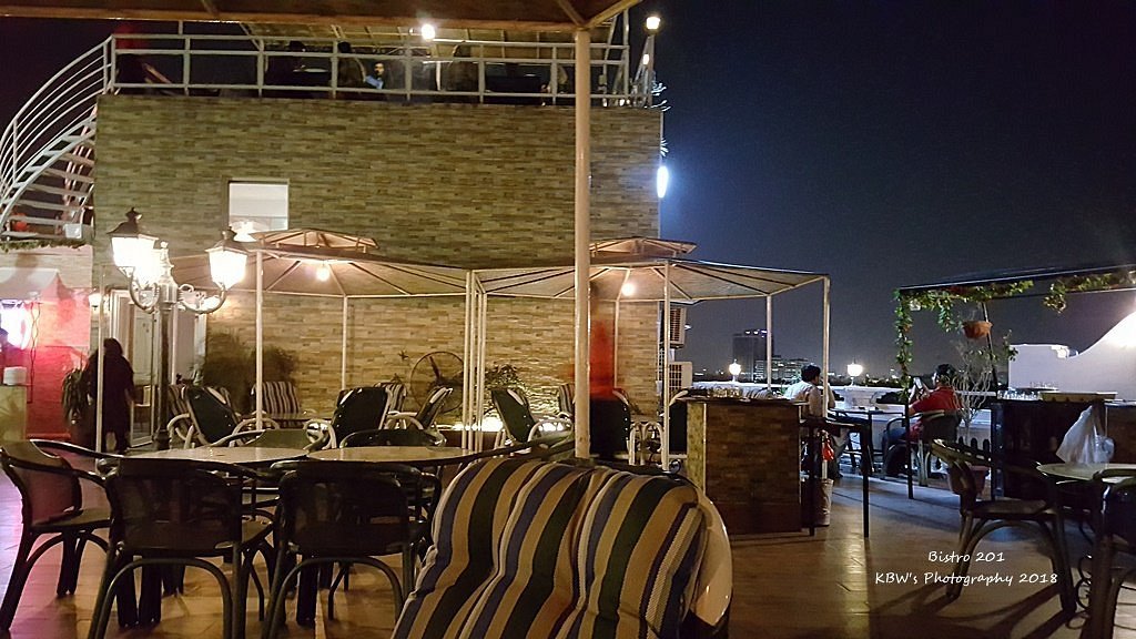 Bistro 201 offers a cozy rooftop setup with modern décor and a soothing ambiance.