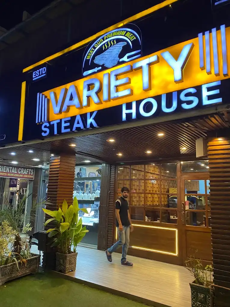 Variety Steak House offers an extensive menu featuring different steak options cooked according to customer preferences.